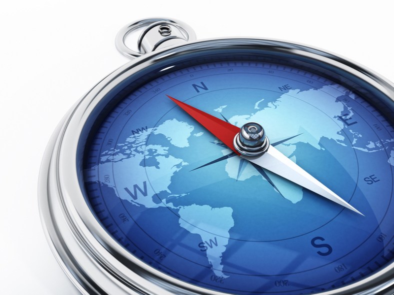 Compass with world map isolated on white